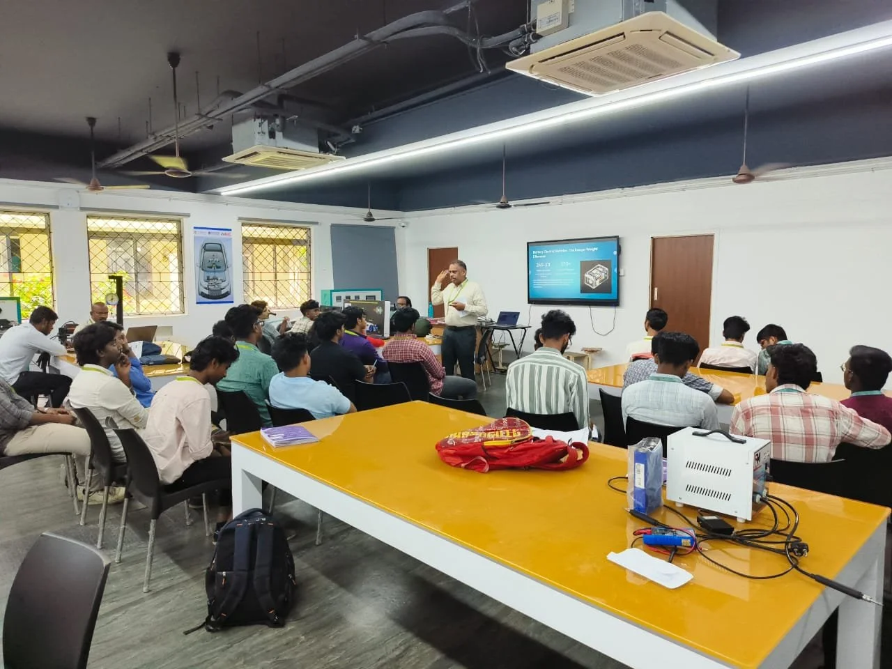 The Center of Excellence in Electric Vehicle & Connected Vehicle conduct the One-Day workshop on "Electric Vehicle Technologies" by Dr. T. Srihari on 19.09.2025 a success. Participants gained insights into battery architectures, smart powertrains, system integration, and balancing performance with sustainability in EV design.