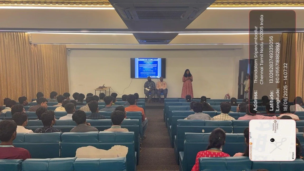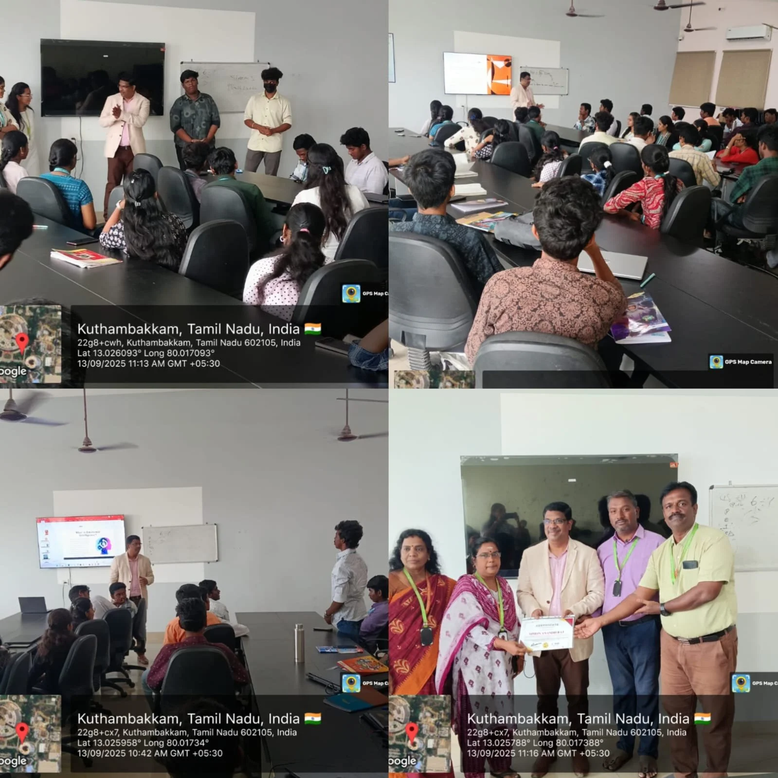 The event was a grand success, with Dr. L. Ramesh, President of the Institution of Green Engineers and Joint Registrar at Dr MGR Educational and Research Institute, Chennai, delivering an inspiring and detailed presentation on prototype development and industry requirements.