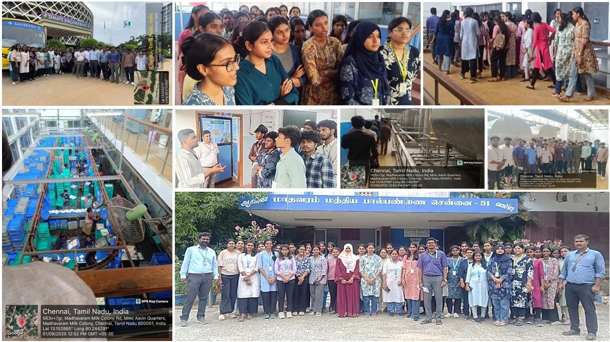 The Department of Big Data and Network Security sincerely thanks SIMATS Engineering Management for supporting the industrial visit to Tamil Nadu Co-operative Milk Producers Federation Ltd. on September 18, 2025. Seventy-five students and two faculty members gained valuable insights into dairy operations, quality assurance, and supply chain management, linking classroom learning with real-world industry experience.