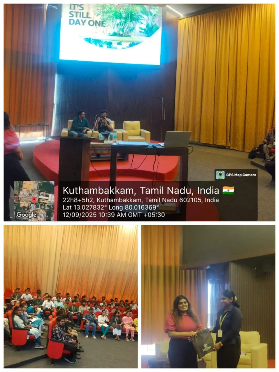 The Department of Placement at SIMATS Engineering successfully organized a one-day seminar on “Careers in Amazon, Interview Tips, and Demo on Solving Coding Problems” on 12th September 2025. The session provided students with valuable insights into career opportunities at Amazon, effective interview strategies, and practical approaches to coding challenges. We were honored to host Ms. R. Veda Nadgouda, Amazon University Talent Acquisition Recruiter; Mr. Karthick Shankar, Software Development Manager; and Mr. Anto Joshwa, Software Development Engineer, as resource persons. Ms. Nadgouda offered guidance on the recruitment process, essential skills, and employability strategies, while Mr. Shankar and Mr. Joshwa conducted an engaging coding demonstration that highlighted systematic problem-solving, logical reasoning, and writing efficient code. The seminar enhanced students’ technical competence and confidence in facing assessments and interviews.