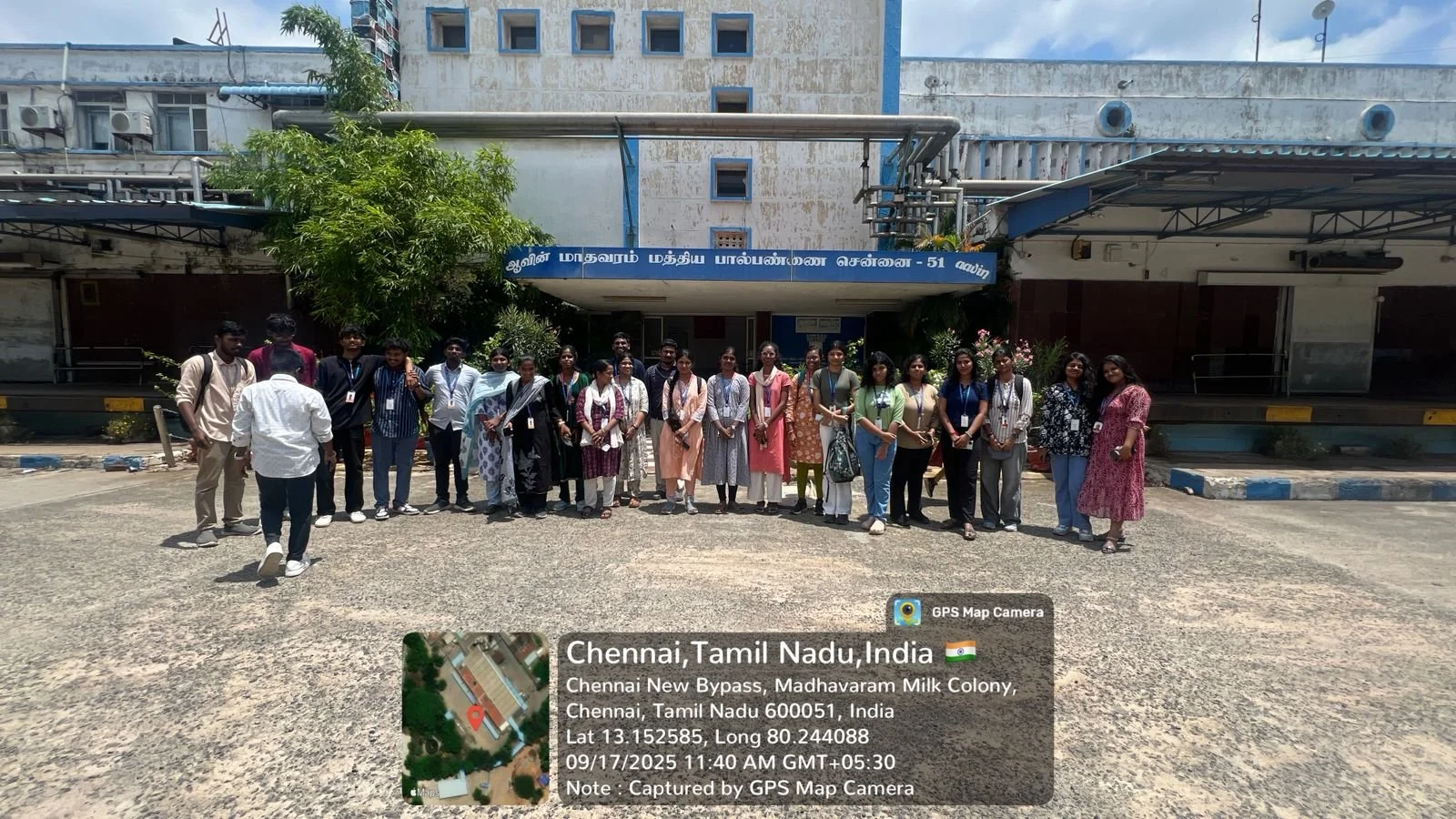 The Department organized an enriching Industrial Visit to the Tamil Nadu Cooperative Milk Producers’ Federation Limited (Aavin), Madhavaram, on 25th August 2025. The visit saw the enthusiastic participation of approximately 48 students accompanied by 5 faculty members.