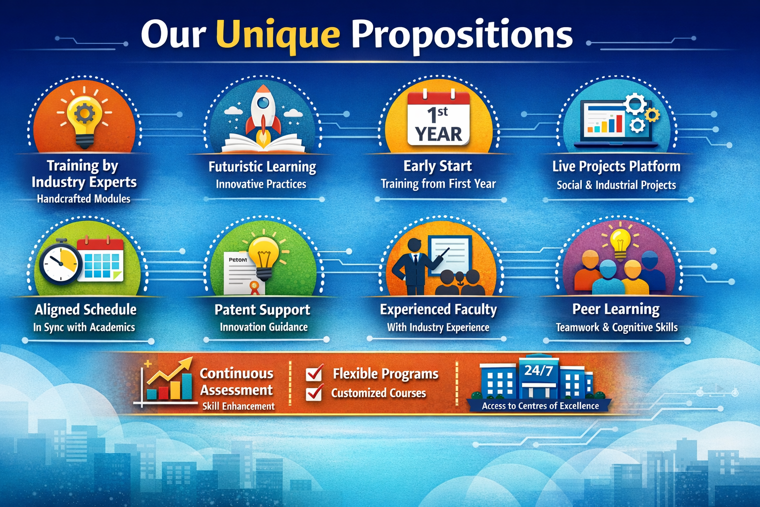 The institution emphasizes experiential learning through structured internship and industry engagement programs that bridge academic learning with real-world application.