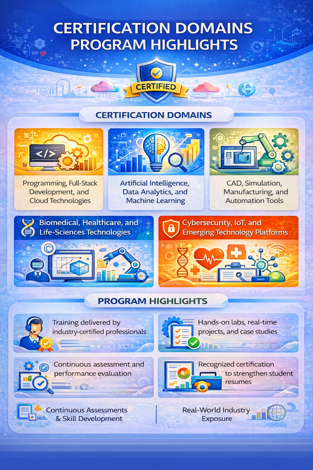 To enhance employability and industry relevance, SIMATS Engineering offers company-based and industry-aligned certification programs that equip students with practical skills and globally relevant credentials.