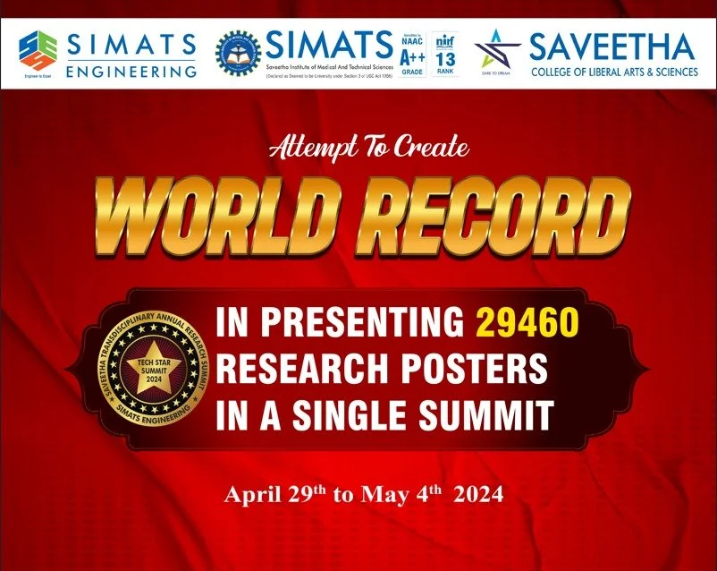 The TECH STAR SUMMIT at Saveetha Institute of Medical and Technical Sciences (SIMATS) is a first-of-its-kind research event in India, bringing together undergraduate innovators to showcase their cutting-edge research projects in a poster format at a single venue.